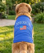 Let dogs rep the red, white, and woof in the America Dog Shirt in Blue! Featuring bold letters on a soft 100% cotton tank, this patriotic shirt is perfect for Fourth of July parades, backyard barbecues, or showing national pride year-round. With breathable fabric and a comfy fit, dogs will stay cool while turning heads from sea to shining sea!