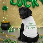 No one's going to pinch this pup in this 100% cotton "Happy St. Patrick's Day" Dog Shirt in White.