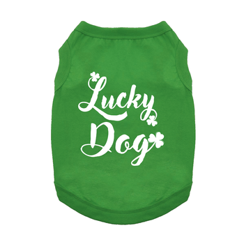 This is one lucky pup! The cute 100% cotton "Lucky Dog" Dog Shirt in Emerald Green will let every one know that a little pet will lead to a little luck!