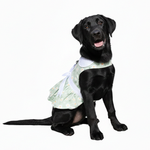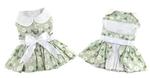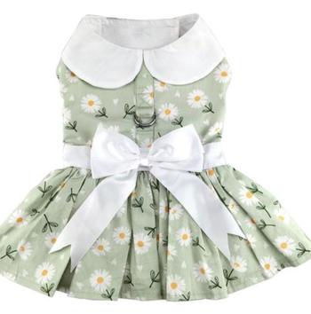 This adorable Mint Green Daisy Dog Dress is perfect for spring outings or a walk in the garden. The daisies and hearts print is accentuated with a white collar and a bow at the waist.