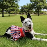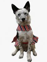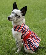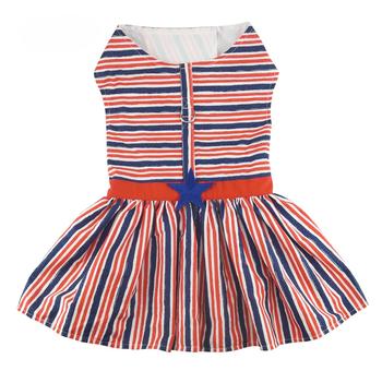 Dress in star-spangled style! This Patriotic Dog Dress in red, white & blue features a cute, blue star accent and red waistband. This striped dress is perfect for July 4th celebrations, summer picnics, and BBQs.
