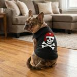 Arrrr you ready for cuteness? This Pirate Skull dog shirt in Jet Black features a bold crossbones design topped with a red skull-and-crossbones bandana for a classic swashbuckling look. Made from 100% cotton, this lightweight and breathable tank is perfect for Halloween, pirate parties, or any pup with a rebel streak!