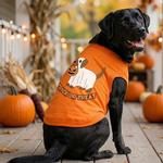 Get your pup ready to go door to door with this Trick or Treat dog shirt in bright sunset orange. Featuring a dog in a fun ghost costume carrying a jack-o’-lantern, this festive shirt is a Halloween must-have. Crafted from soft, breathable 100% cotton, it’s ideal for spooky strolls, costume contests, or staying cozy while passing out candy!